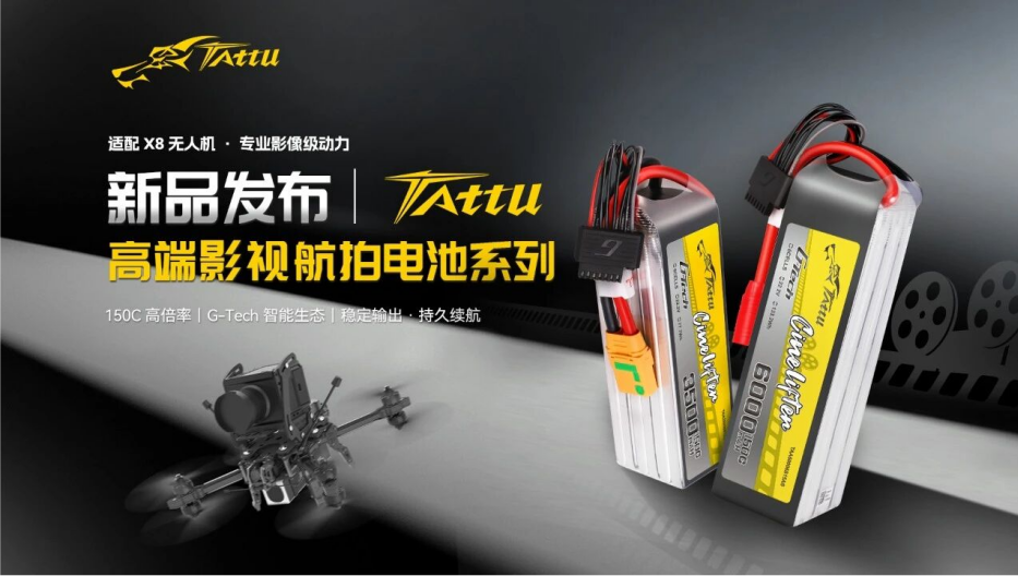 在影視航拍的世界里,每一秒的飛行畫(huà)面都至關(guān)重要。Tattu全新推出的 Cinelifter系列150C高倍率電池(3500mAh / 6000mAh),專為X8、Y6等重載穿越機(jī)平臺(tái)打造,為專業(yè)航拍與影視制作帶來(lái)極致動(dòng)力體驗(yàn)。 -